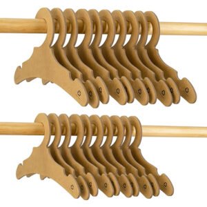 Paper hangers are crafted using biodegradable pulp materials, specifically hard cardboard and kraft paper. After undergoing a rapid glue application process, they are formed into finished hangers. Ideal for use in shopping malls, these hangers add an aesthetic and refined touch to customers’ wardrobes, serving as attractive advertisements. When customers open their closets, the hangers showcase clothing that suits their preferences and body shapes, capturing their attention. Simultaneously, the seller’s company logo once again catches the customer’s eye, enhancing the likelihood of repeat visits to your store.