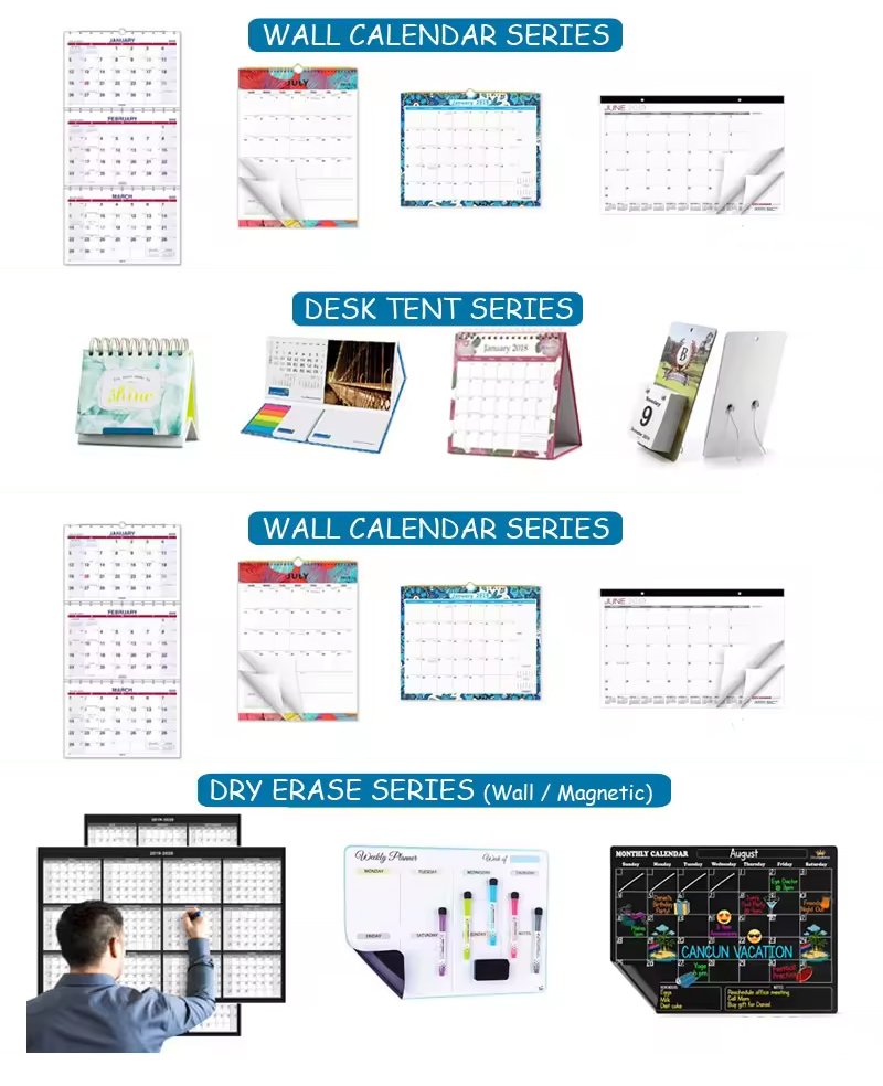 -PU leather or Paper notebook, Diary, Sketch book, Sticker, Envelop, Folder(paper file), Calendar, Textbooks…